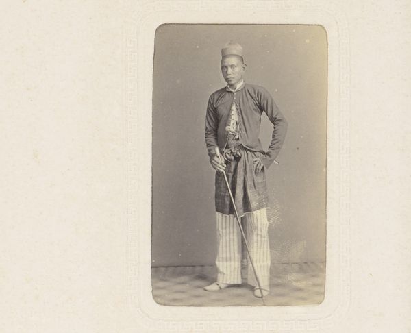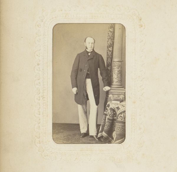 This is a portrait of a man with sideburns by S.J. Wiseman, rendered using a photographic process. Note the symmetrical balance and the central positioning of the figure within the frame. The restricted tonal range, dominated by shades of sepia, conveys a sense of historical distance. The man’s formal attire and composed stance suggest an emphasis on status and decorum, typical of portraiture of the time. The composition, dividing the frame into clear figure and ground, is a statement on representation itself. The photograph’s structure—the way Wiseman has organized the elements within the frame—encourages us to consider how portraiture functions to convey identity and social roles. It challenges fixed meanings and engages with new ways of thinking about perception. It's a cultural and philosophical discourse about the function of representation and portraiture.