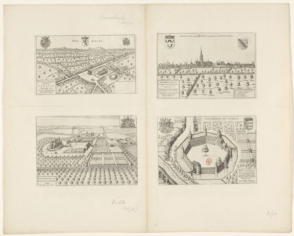 Vedastus du Plouich crafted these images of Elverdinge, Lo, Zottegem, and Roesbrugge using engraving techniques. Dominating the skyline of each town, the coats of arms float ethereally. These heraldic symbols were not mere decorations but potent emblems of identity, power, and lineage in the 16th century. They served as visual anchors, connecting the present to the past, and the individual to the collective. The coats of arms remind me of similar emblems adorning medieval tapestries and the shields of ancient warriors. Think of the lion rampant, a symbol of courage and nobility, or the fleur-de-lis, representing purity and French royalty, each carrying layers of historical and cultural significance. They have evolved over centuries, adapting to shifting social and political landscapes, yet their core function remains: to evoke a sense of belonging. These symbols resonate deeply, tapping into our collective memory and subconscious desires for order, stability, and recognition. They are powerful forces engaging viewers on a deep, subconscious level, promising continuity and heritage.