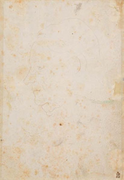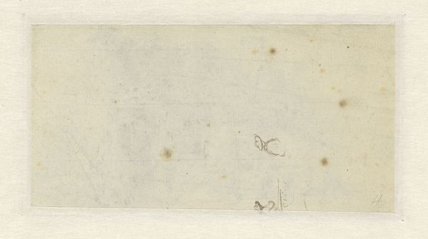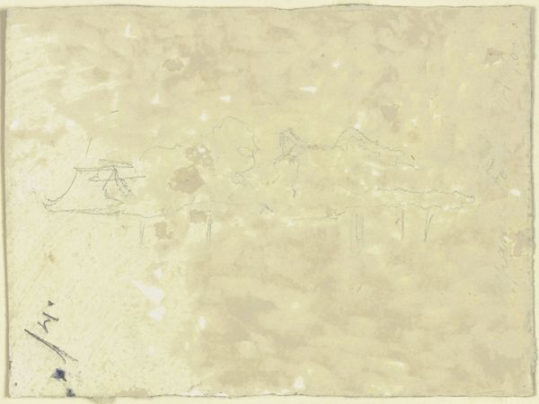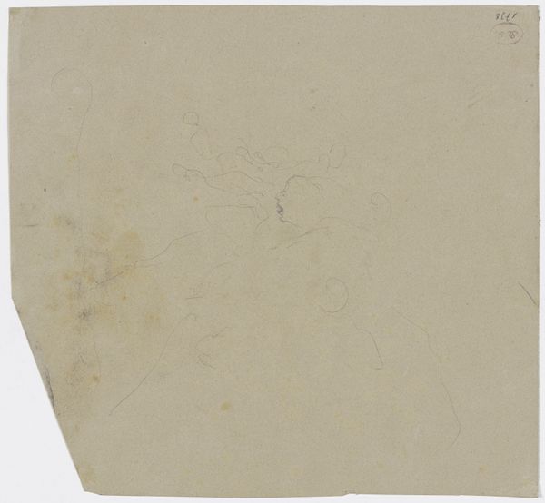 Curator: Let’s turn our attention to this compelling, although somewhat enigmatic, piece by Hans Thoma entitled "Studies of Figures." It is rendered with ink and stain on paper. Editor: First thought? Feels like peering through fog. An exercise in controlled accidents. All this bare paper whispers rather than shouts, which I quite enjoy. Curator: Indeed. Its abstraction is notable, especially when considered against Thoma’s broader body of work. The monochrome palette further focuses our attention on the materiality, and the tonal variations across the surface. What do you make of the composition? Editor: You know, compositionally it teeters on the edge of chaos. Are those intentional marks on the paper? Or incidental, even accidental? I find my eye dancing, searching for some resolution. Yet, that search is strangely satisfying! Curator: Observe the faint geometric forms hinted at beneath the stain. Their presence suggests a conscious effort to impose order, to bring the organic nature of the stain into conversation with structured shapes. The tension intrigues. Editor: That tension’s the heart of it, isn’t it? Order wrestling with chance. Like life! Curator: Precisely! The staining technique here invites a discourse around chance and control. By its nature, the application creates unique textures, disrupting traditional picture-making. Editor: The overall effect... the translucence almost evokes something ancient, like the backing of a faded manuscript found after ages. A strange blend of something very immediate mixed with the impression of witnessing something long, long gone... Curator: An insightful observation, reflecting perhaps Thoma's ambition to merge modern techniques with a romantic yearning for historical context and deeper symbolic layers. It makes you wonder what exactly he intended to figure out when making his "studies"... Editor: It is indeed a mysterious creation. Each time I cast a glance in its direction I find something novel to contemplate!