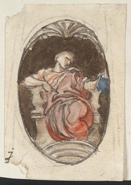 Editor: Here we have an undated watercolor by Reuben Townroe, which depicts a seated figure holding scales. It feels symbolic, like a representation of justice. What do you make of it? Curator: The figure of Justice, often depicted since antiquity, takes on specific meanings depending on the socio-political context. Consider Townroe's time, mid-19th century Britain, a period of immense social reform. Editor: So, the image of Justice might be a commentary on contemporary legal or ethical debates? Curator: Precisely. The scales, a traditional symbol, represent impartiality, while the sword often symbolizes power or enforcement. How do these symbols resonate with contemporary issues? Editor: Perhaps a reflection on the fairness, or lack thereof, in Victorian society's legal system? I hadn't considered the social implications so directly. Curator: Art often acts as a mirror, reflecting and critiquing the world around it. Looking at art in a social context helps us see through the artist's eyes. Editor: Thank you, I’ll think about that next time I see an image of Lady Justice!