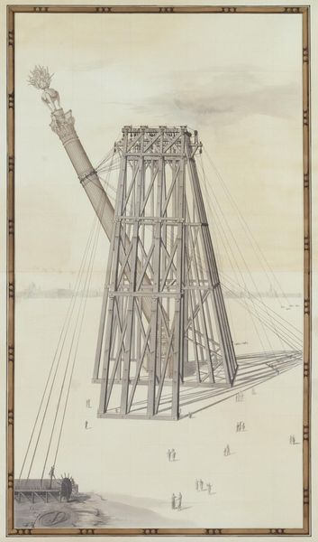 This engraving, made by Domenico Fontana, depicts the transportation of the Vatican Obelisk. It reveals not only the finished artifact, but also the material and process of its relocation. Fontana, an accomplished architect, meticulously captures the immense wooden scaffolding erected to hoist and move the ancient obelisk. Look closely, and you'll see the complex network of ropes, pulleys, and levers—the very sinews of 16th-century engineering. The print is rich in its depiction of labor: teams of men and horses strain under the load, highlighting the sheer human effort required for such a monumental undertaking. The visual language speaks volumes about the era's values. It elevates not only the result—the towering obelisk—but also the ingenuity and exertion that brought it to its new site. By foregrounding labor and the built environment, Fontana invites us to consider the social and material foundations upon which even the most impressive achievements rest.