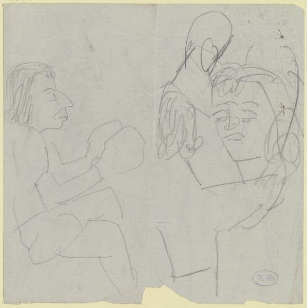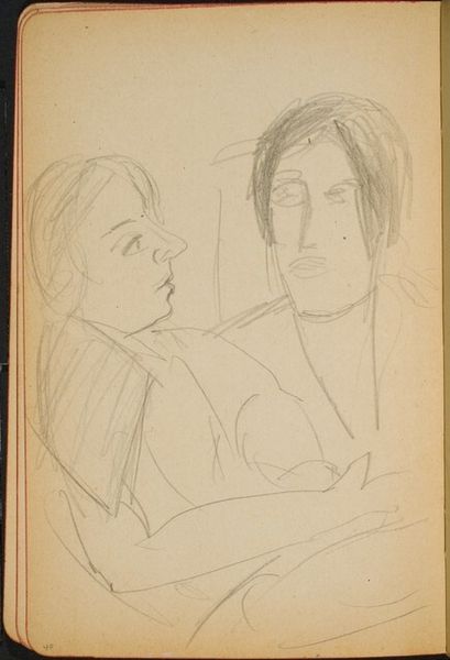 Max Beckmann made this pencil sketch, "Three at a Table," in a notebook, sometime in his life, we don't know exactly when. Look at the light touch of the pencil, how he builds up the figures with such simple lines. It's like he's thinking through the drawing, letting the forms emerge bit by bit. The material quality of the work is all about this delicate balance. The paper is off-white, almost fragile. You can see the grain. The pencil marks vary in darkness, some lines barely there, others more assertive. Notice the face of the woman in the center, those dark strokes for the eyes and eyebrows giving her a real presence. Then look at the figure on the left, much more lightly sketched, almost fading into the background. That contrast is everything, you know? It reminds me a bit of some of Picasso’s sketches, that same sense of capturing a fleeting moment with minimal means. Art is a conversation, right? And Beckmann's definitely in the mix, exploring the human figure with his own distinctive voice.