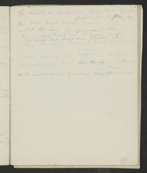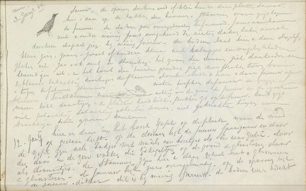 Curator: Ah, yes, Reijer Stolk's "Notities," circa 1916. A whirlwind of ink and paper and, look closely, even some textile elements. It's like stumbling upon a whispered secret. Editor: It’s incredibly intimate, isn't it? Almost voyeuristic. The handwriting, the faded paper...it gives off a very melancholy feeling. What strikes you most about this piece? Curator: Its fragmented nature, I think. Like trying to piece together a shattered memory. The mix of script and sketches, of defined forms and abstract shapes, reminds me of the chaotic, wonderful jumble of the human mind. Have you seen any recurring images that grab you? Editor: There are floral motifs, almost Art Nouveau in their style, that are fighting for attention. There is text here as well; does this relate to his artistry? Curator: Yes, symbolism seeps through. Remember, Stolk moved in circles influenced by Symbolism and Art Nouveau. To me it almost serves as Stolk’s way to say everything and nothing. It's a personal visual language we are seeing, in a language we likely cannot read. A visual stream of consciousness from an artist grappling with love, loss, and, I suspect, the burgeoning madness of war. A rather intense experience of beauty! Editor: It is more evocative with that historical backdrop in mind! I saw the chaotic nature initially, now I appreciate the method within it. Curator: Exactly. And isn't that often the way with art, and life itself? What once seemed disordered suddenly reveals a profound, underlying harmony. Thanks, as always, for your astute perspective, too!