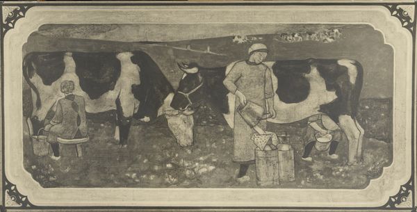 Editor: Here we have "Herbst," or "Autumn," a genre painting made in 1895 by Heinrich Zille using charcoal, ink, and print on paper. The figures are carrying what look like foraged goods; it's somber and industrious. What do you see in this piece, especially considering its time? Curator: This work speaks volumes about the socio-economic realities of late 19th-century Germany. Zille was known for his stark portrayals of working-class life in Berlin. The burdened figures suggest a narrative of survival, likely women and children gathering resources for sustenance as winter approaches. Consider the backbreaking labor involved. How does the landscape, almost oppressive, reflect the limited opportunities available to these individuals, especially women? Editor: It definitely feels like a struggle, but there’s a resilience too. Is it fair to say that Zille is almost making a political statement here? Curator: Absolutely. Zille's realism wasn't just about depicting what he saw, but about critiquing the societal structures that created these conditions. He gives visibility to those often ignored by the dominant narratives of his time. His work embodies the very concept of "art as activism", don't you think? What are the power structures being revealed in this work? Editor: The contrast between the figures weighed down by their burdens and the seemingly endless field highlights their vulnerability, but also their labor... it highlights, too, that someone must do this difficult labor to survive. Thank you, this has made me see how social commentary can be woven so powerfully into art. Curator: And it serves as a crucial reminder that art can—and should—prompt us to question the status quo and advocate for a more just world. Thinking about labor in art offers rich insights.
