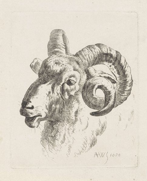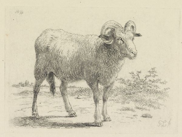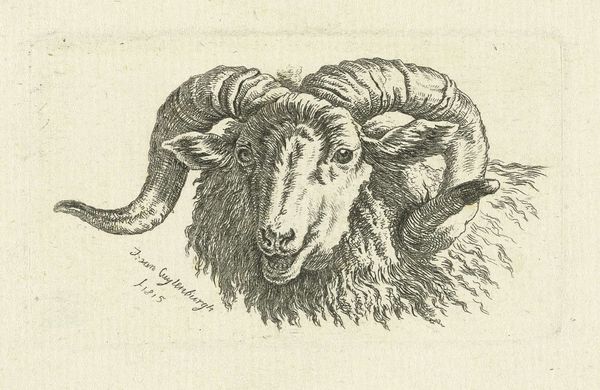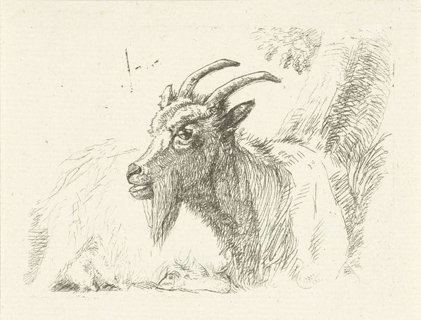 Editor: So, here we have Jan Dasveldt’s “Liggende geit,” or “Reclining Goat,” created sometime between 1780 and 1855. It’s a drawing in ink, and the realism is really striking, it looks almost like a photograph. What do you see in this piece, that I might be missing? Curator: Ah, yes, a somewhat stubborn creature captured in ink. For me, it's about capturing a personality. Look at the gaze – knowing, a little world-weary, perhaps? Think of the long tradition of animal portraiture, often stand-ins for human characteristics. It’s not just *any* goat; it's *this* goat, with its own story. Makes you wonder what it’s seen, doesn't it? And consider the delicate cross-hatching—gives the coat texture and volume despite being just lines on paper. Almost sculptural, wouldn’t you agree? Editor: It does have a very solid feel to it. I hadn’t thought about the personality aspect so much. It is more than just a representation of a goat. I think I was too caught up in the technical skill. Curator: Skill is part of it, of course. But skill serves the story, always. The slight looseness in the lines around the edges keeps it from being overly precious, I think. It’s like the artist wanted to let the goat’s essential “goat-ness” shine through, flaws and all. Editor: That’s a beautiful way to put it. So it's less about perfect rendering and more about... capturing the soul of the goat? Curator: Precisely! Or at least a good go at it. I mean, can we ever truly know a goat? But Dasveldt invites us to try. What do *you* think, after considering this, you goat guru you? Editor: I love it! I see now how the loose lines give it more character. It feels alive. Thanks, I learned a lot. Curator: My pleasure! A new goat convert. Off you go.