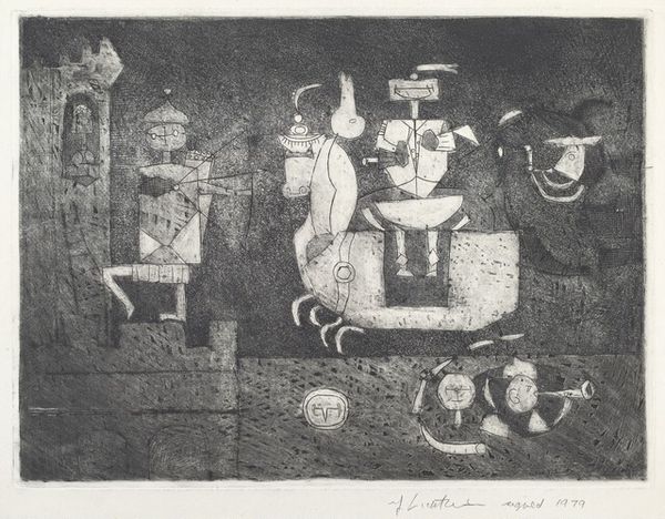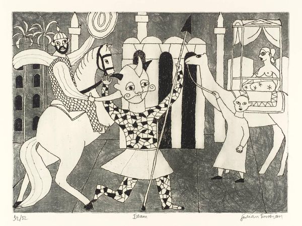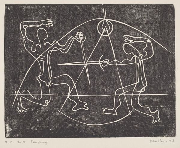 Ynez Johnston made this print called ‘Mexico’ in 1949, and it's a real trip into a different kind of seeing, you know? The way she carves out these shapes, it's all about process, like she's thinking with the knife, letting the material guide her. The black and white is so stark, it’s like a high contrast dream. Check out the texture, you can almost feel the wood grain, right? The way the white pops out against the black, it's not just about what she's depicting, but about the physicality of the medium. Look at the horse on the left, the way the lines are so jagged and the shapes are slightly askew, it's this awesome mix of representation and pure abstraction. Johnston reminds me a bit of someone like Paul Klee, always experimenting, always pushing the boundaries. It’s not about perfect representation, but about opening up new ways of experiencing the world.