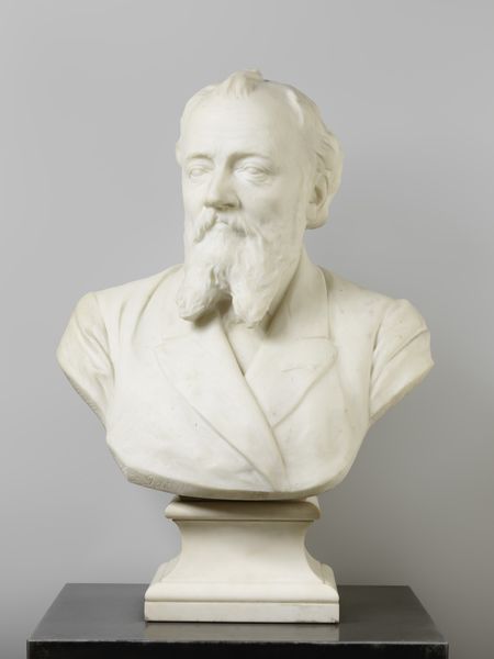 Ludvig Brandstrup made this portrait of the Danish painter Vilhelm Kyhn. This sculpture reflects the 19th-century cultural emphasis on the individual, particularly the celebration of artists and intellectuals. Kyhn, known for his landscapes, became a symbol of Danish national identity through his art. Brandstrup immortalizes Kyhn in a classical bust format, aligning him with historical figures of importance. Consider the social standing of artists like Kyhn during this period. How does Brandstrup's representation reinforce or challenge traditional power structures? The emotional depth Brandstrup captures, especially in Kyhn's eyes, invites us to reflect on the connection between artistic vision and personal experience. The sculpture stands as a testament to the cultural values placed on artistic legacy. It encourages us to consider how artists shape our understanding of national identity.