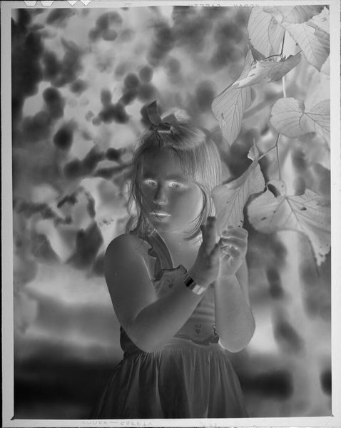 Editor: This is an intriguing black and white photograph by Lucian and Mary Brown, simply titled "Untitled (boy sitting on brick wall)." The boy seems to be fiddling with his shoelaces. What strikes me is the everydayness of the scene; what do you see? Curator: The negative form emphasizes the photographic process itself. What kind of labor went into this image? We must consider the cost and accessibility of photography in this era to understand who had the means to produce such an image, and for what purpose. Editor: So, the image's value lies not just in the subject, but in its production and consumption within a particular social context? Curator: Precisely. It makes you wonder about the subjects' class, and how this medium might play into their identity.