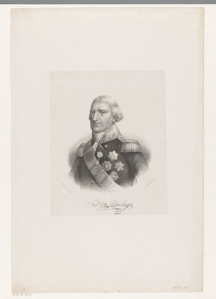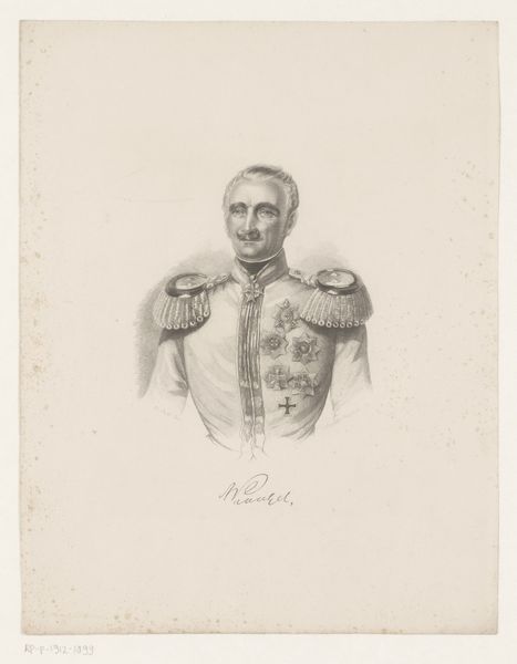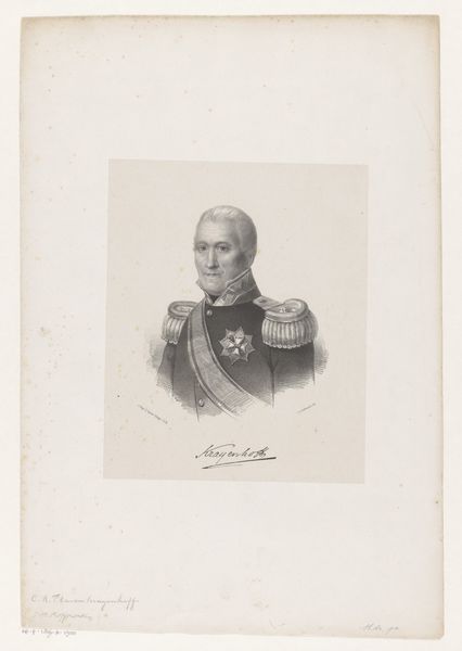 Editor: Here we have a print entitled "Portrait of Jan Coenraad Koopman" dating from approximately 1851 to 1883, by Johan Hendrik Hoffmeister. It’s an engraving and very detailed. It's so meticulously rendered; the man's awards really stand out. What do you see in this piece from a formalist perspective? Curator: The first element that commands attention is undoubtedly the complex interplay of lines and tonal gradations. Consider the precision with which Hoffmeister renders the sitter's features, and note also the masterful application of hatching and cross-hatching to create volume and depth, thus giving the impression of robust three-dimensionality on an essentially two-dimensional surface. Note how light defines form, with a clear attention to detail. Editor: So it’s about appreciating the lines and how they work together. Does the sitter’s expression come into it at all? Curator: While the countenance itself possesses a certain narrative quality, our concern, from a purely formalist position, remains riveted on the manipulation of artistic techniques. Notice the deliberate contrast between the stark formality of the man’s attire and the subtle undulations within the engraved lines forming the face, creating tension between rigid social roles and fleeting emotions. Editor: So even the face is just another element in the larger composition. I never thought about it like that before. I’ve learned so much by considering how the form and technique dictate the message, even more so than what is actually portrayed. Curator: Precisely. And what a wonderful opportunity to consider these concepts.