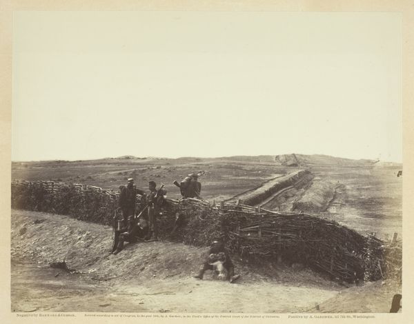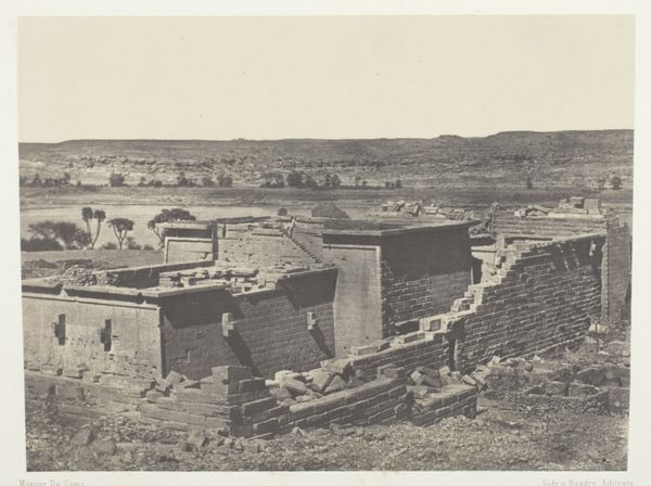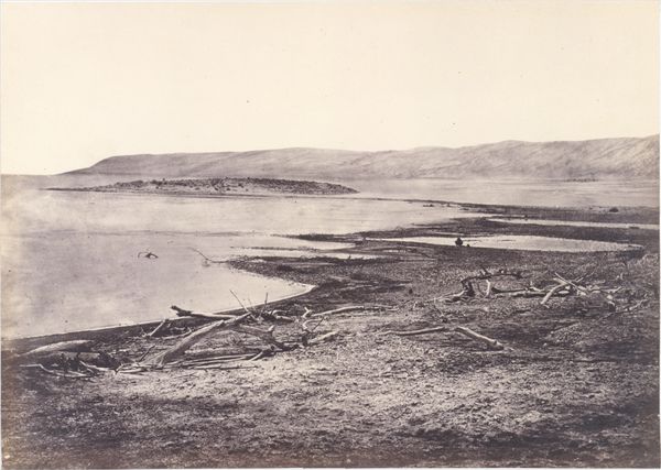 Editor: This is "Jérusalem, Côté Sud de Jérusalem" by Auguste Salzmann, a photograph dating back to sometime between 1854 and 1859. It feels quite stark. I'm struck by how the city is presented as almost an extension of the landscape itself. What do you see in this piece? Curator: The formal elements of this photograph present a carefully constructed interplay of light and shadow. Note how Salzmann uses the high vantage point to compress the spatial recession. The tonal range, while limited by the daguerreotype process, is carefully deployed to articulate the architectural forms and the textures of the land. Editor: So you're focusing on the arrangement of the image, less on what it represents? Curator: Precisely. Consider the geometry. The horizontal thrust of the city walls contrasts with the diagonal slopes of the surrounding terrain. This tension creates a visual dynamism. Are you noticing how the subtle gradations of tone contribute to a sense of depth? Editor: I see that now, yes. It's interesting how he uses light and dark to create layers. Is that a common feature of this type of photography? Curator: Early photography often grappled with the challenge of representing depth and volume. Salzmann’s approach, through his astute manipulation of tonal values and compositional arrangements, showcases a sophisticated understanding of visual structure. Editor: I initially missed a lot of that, focusing on what was depicted. Looking at the interplay of shapes and light really changes how I see it. Thanks! Curator: Indeed. It is through an examination of form that we unlock deeper understanding of artistic intention and effect.
