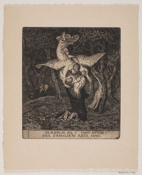 Curator: Fantin-Latour created this lithograph, titled "Frontispiece: Truth," in 1885. You can find it here at the Art Institute of Chicago. Editor: My first thought? Dreamy. There's a softness to the scene, almost like a faded memory or a half-remembered myth. All the soft, cloudlike shapes, so easy on the eye. Curator: That softness comes from his mastery of lithography. The process allows for incredibly subtle gradations of tone. As you get closer, you can appreciate how he achieved the delicate blending through complex layers of ink. Consider its place in the history of printmaking as an independent art form. Editor: Totally. It's like he’s painting with light and shadow rather than carving lines. What do you make of the allegory here? Seems heavy, but also...uplifting? Curator: The figure personifying Truth rises, holding a tablet inscribed with composers' names, seemingly elevated to a higher status by the winged figure. You have Schumann, Berlioz, Wagner, and Brahms, specifically honored in his tableau, which reveals a deliberate act of artistic canonization. This reflects Fantin-Latour’s deep investment in the musical world and his active role in shaping public taste through art. Editor: Art building up art, music, and fame all at once. And that trumpeting angel just seems ready to usher in some grand pronouncements, doesn't it? Though it's really funny how they're sort of piled up there, with all those little cherubs kinda crammed behind the winged goddess. What's up with the angel pile up? Curator: It is certainly evocative in its arrangement, prompting interpretation regarding visual economy versus deliberate stacking of visual language, specifically considering Fantin-Latour's overall project for public promotion of music in visual art at the time. What resonates with me is the bold choice to visualize an artistic stance on truth in music itself. Editor: Mmhmm. Truth always makes things a little noisy. A perfect print to close the ears and open the mind, and an ideal image to take in, right before strolling off for an exquisite moment with our very own truth.