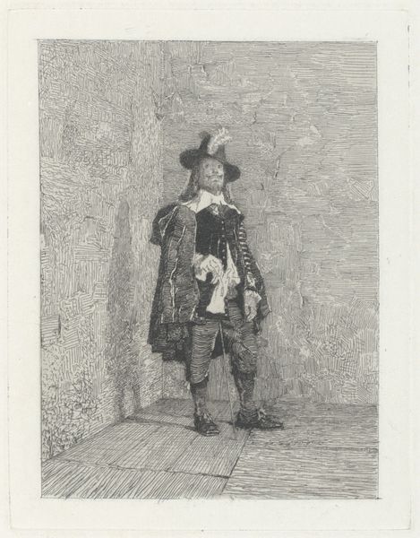 Jehan Georges Vibert's painting "Polonius Behind The Curtain" presents us with a moment of dramatic tension. The composition is immediately striking: Polonius, cloaked in vibrant red, lurks beside a tapestry, his figure cut off, heightening the sense of secrecy and anticipation. Vibert's use of color is crucial here. The boldness of Polonius's red cloak contrasts sharply with the muted tones of the tapestry, drawing our eye and underscoring his agitation. This juxtaposition isn't merely aesthetic; it's a calculated move to highlight the character's inner turmoil. The painting destabilizes the clear divisions between public and private, observer and observed. The curtain, a symbol of division, becomes porous, allowing for the intrusion of political machinations into personal spaces. This is Vibert's commentary on the theatricality of power, where appearances and reality are constantly at odds. The dynamic interplay between color, form, and the compositional structure embodies the complexities of human motives and the elusive nature of truth. The curtain, a central formal element, signifies not just concealment but the very fabric of deceit that permeates human relationships.