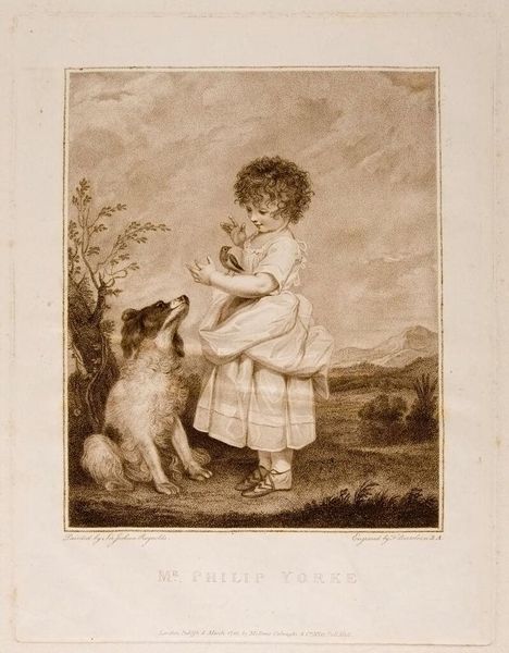 Editor: This print by James Watson depicts George, Prince of Wales, and Prince Frederick. They’re quite young here and dressed almost identically. What strikes me is how the innocence of childhood is presented, but also maybe a sense of the expectations placed upon them. What do you see in this piece? Curator: It’s precisely that tension between innocence and imposed identity that interests me. Consider the historical context: these are not just children; they are symbols of dynastic power. How does the artist negotiate portraying their youth while simultaneously signaling their roles within a rigid social hierarchy? Think about the ways gender is performed here too; these boys are presented in a way that almost mirrors the conventions of female portraiture at the time, further complicating their identities. Editor: So, it’s less a straightforward portrait and more a commentary on constructed identities? Curator: Exactly. It prompts us to question the very nature of representation and the societal forces shaping these young princes.