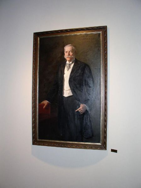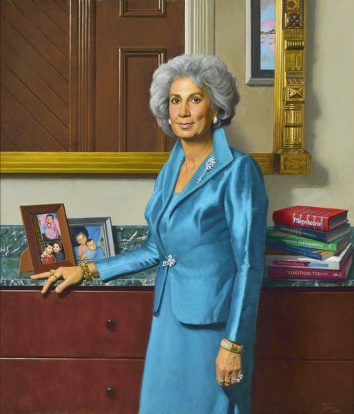 This is a portrait of Governor John Engler, painted by Nelson Shanks, who passed away in 2015. Executed in oil paint, this work exemplifies a traditional approach to portraiture. The artist carefully builds up layers of color and detail, employing techniques that have been refined over centuries. However, the choice of oil paint itself reveals a connection to a specific cultural and economic context. The industrial production of paints, combined with the availability of canvas, allows for the creation of relatively large-scale artworks that could be commissioned by patrons and institutions. Shanks' skilled handling of the medium, his ability to capture likeness and convey a sense of authority, speaks to a tradition of academic painting that has long been associated with power and status. In many ways, such a portrait serves as a material testament to the enduring connection between art, labor, and the representation of political influence. The portrait stands as a reminder of the complex interplay between artistic skill, material culture, and the social forces that shape our understanding of leadership.