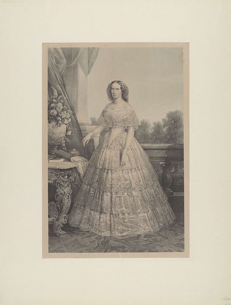Jean Baptiste Alfred Cornilliet made this print of Anna Paulowna Romanowa. Here, she appears as a figure of power and grace, embodying the conventions of 19th-century aristocratic portraiture. Looking closer, we can see how gender, class, and nationality intersect in the representation of Anna Paulowna. Born into the Russian Romanov dynasty, she became Queen of the Netherlands through marriage. Cornilliet's print reflects her constructed identity, with the trappings of royalty, such as her tiara and pearl necklace, serving to reinforce her elevated status. The gaze is averted, regal yet remote. Consider the role of portraiture in shaping historical narratives. Does this portrait offer insight into Anna Paulowna's personal identity? Or does it primarily serve to uphold the power structures of the time? This print invites us to reflect on how individuals are both shaped by and can challenge the societal expectations imposed upon them.