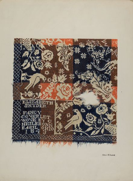 Editor: Here we have "Applique Coverlet (Detail)" created in 1941, employing textile and drawing alongside other media by Adolph Opstad. There's a sort of folksy charm to this piece. How do you read it? Curator: This piece immediately brings to mind the history of craft as a socially undervalued art form. We often overlook the ways domestic textiles, like this coverlet, engage with and reflect broader artistic and social currents. The artist's choice to depict birds and natural scenes reminds us of the influence of the Arts and Crafts movement, which emphasized handcraftsmanship and a connection to the natural world. Editor: It feels very… humble. Not something you'd expect to see in a major gallery. Curator: And that perception itself is something worth examining. The hierarchy between "high" art and craft has been constructed and maintained by institutions like museums and galleries. By showcasing work like this, we challenge those power dynamics and acknowledge the artistic value inherent in everyday objects. Editor: So, in a way, displaying this piece here changes how we think about what deserves to be shown? Curator: Precisely. It also makes you wonder, doesn’t it, about the original context this coverlet would have lived in. It likely adorned a bed in a private home. Do you imagine that owner understood their coverlet to be making a cultural statement? Editor: Probably not! It does give me a new appreciation for the stories objects can tell. Thanks! Curator: And for me, it reinforces the vital role institutions play in shaping those stories and the need to be critically aware of how those decisions affect perceptions of cultural worth.