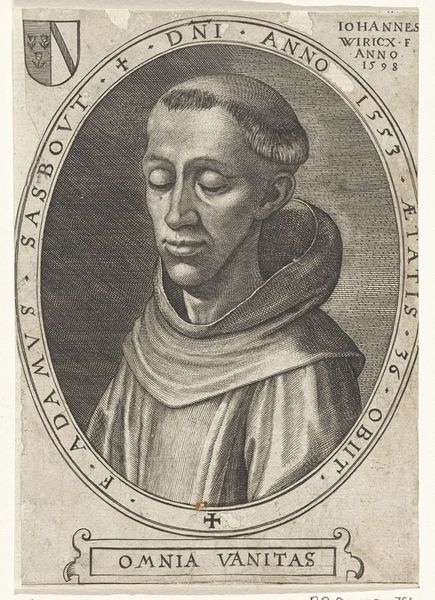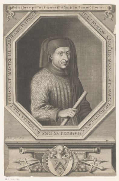 Curator: Let’s turn our attention to this intriguing piece, “Portret van Rudolf Agricola,” an engraving dating back to the 17th century, now held at the Rijksmuseum. It depicts Rudolf Agricola, a significant figure of the Northern Renaissance. Editor: The linear precision immediately strikes me. Notice the elegant oval frame and how the engraver meticulously used hatching and cross-hatching to sculpt Agricola's features and clothing. It has a captivating stillness. Curator: Indeed. The engraving technique was crucial for disseminating images and ideas during that period. Portraits like these played a vital role in shaping the reputations and legacies of important figures, functioning almost like public relations tools. Agricola was, after all, a noted humanist scholar and his visual representation mattered. Editor: Absolutely. And considering the linear nature of engraving, it’s amazing how the artist captures light and texture—particularly in the rendering of the fur collar and the subject's cap. The contrast enhances the three-dimensionality. Curator: Precisely. This image would have circulated amongst intellectual circles, reinforcing Agricola's status. It is essential to consider how this artwork contributed to the construction of his public persona and humanist movement narrative. Editor: Still, it's the artist's masterful control over line and tone that grabs me most, effectively transforming a flat surface into a surprisingly lifelike representation, an arresting example of Northern Renaissance printmaking. Curator: The layers of cultural meaning embedded within it also add significantly to its presence and historical significance. Considering it, as just a depiction would be a misreading. Editor: A fine print; it merges the technical prowess of the engraver with its societal context, something we should remember while visiting this gallery.