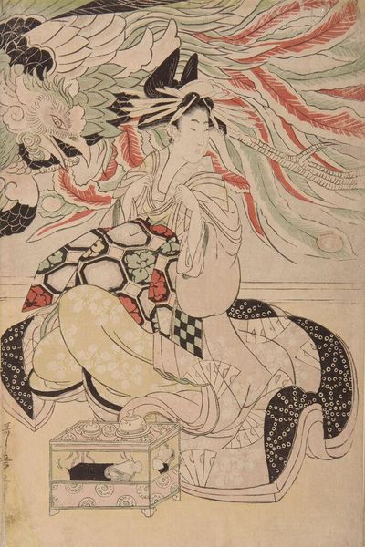 Editor: We're looking at "Tomoe-gozen," a hanging scroll in ink and color on silk, created around the early 20th century by Miki Suizan. The artwork presents a female warrior on horseback, and the pale colors give the piece an ethereal, almost dreamlike quality. What strikes you most when you look at it? Curator: Oh, isn't it marvelous? I find myself drawn to the strength in her stillness. Tomoe Gozen was a real figure, a female samurai of incredible prowess. The artist hasn’t just depicted a warrior; they’ve captured a sense of controlled power, almost a silent storm. Do you feel that too? Editor: Definitely! There's a contained energy, like she's about to explode into action, but is holding back. What about the context – how does this piece fit into the art world of its time? Curator: That's insightful. Well, Suizan was working in a period of significant change in Japan, grappling with both tradition and Western influence. This piece nods to ukiyo-e traditions in its subject matter and composition but possesses a modern sensibility in its subtle color palette and focus on individual psychology. It makes me wonder what stories she carries within. Don't you wonder? Editor: It really does. It makes you wonder what she’s thinking! And her position – so strong, but also poised. I initially thought she was on the offensive. Curator: Perhaps! That duality is at the heart of the piece. Strength isn't always about aggression, is it? And isn’t that fascinating—the suggestion of a storm, perfectly held in check. This feels like the kind of painting that whispers different secrets each time you view it. What will you remember about her? Editor: The quiet strength, definitely. It’s like a story waiting to unfold. Curator: Precisely. A beautiful blend of history, artistry, and enduring feminine power.