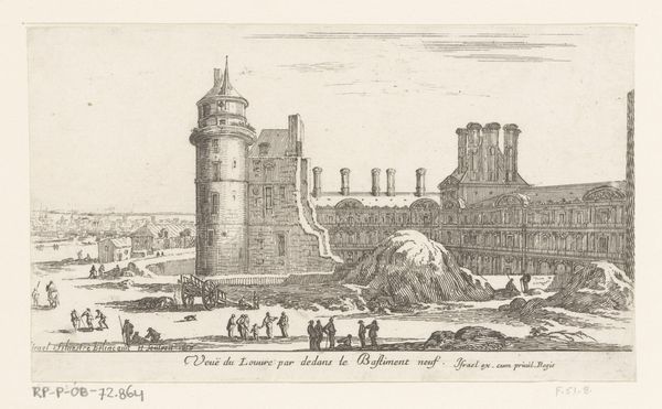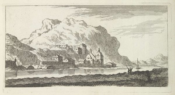 Editor: This engraving, “Gezicht op het Valkhof te Nijmegen,” was created around 1730 by Abraham Zeeman. It depicts a detailed cityscape. There’s a sense of solemnity in the architecture and precise linework. What can you tell me about this image? Curator: Well, considering this is an engraving from the Dutch Golden Age, it's less about individual expression and more about the representation of civic pride and historical context. The Valkhof was, by this time, a ruin, but its depiction serves a powerful symbolic purpose. Editor: How so? Curator: Remember, these cityscapes often served a didactic function. Zeeman’s choice to portray the Valkhof connects viewers to a glorious past, even as it acknowledges the realities of the present. Do you notice how meticulously the architecture is rendered? It reinforces a sense of historical importance. Editor: Yes, it feels very precise, almost like a historical record. Curator: Precisely. And it highlights the tension between documenting what was actually there versus idealizing a specific historical narrative. This wasn't just about showing buildings; it was about building a specific collective memory. Consider how engravings like this would circulate – influencing public perception and contributing to a shared historical consciousness. Editor: So, the 'accuracy' of the image is less important than its function within the cultural narrative? Curator: Exactly! It makes you wonder how images like this shaped political identity. What stories about Nijmegen were they meant to tell? Editor: That’s really changed how I see it; I was initially focused on its aesthetics, but the context completely reshapes the meaning. Thanks! Curator: My pleasure. It is exciting to analyze not just what we see but the society that helped create it!