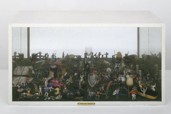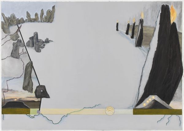 Editor: This is "Jesus Help Me Find My Property" by Tony Swain. It's an enigmatic collage, almost like a fragmented dreamscape. The way these disparate images blend…it's really intriguing. What do you see in this piece? Curator: It feels like a journey through memory, doesn’t it? Swain's layering creates a disrupted landscape. Newspaper becomes scenery. The "property" could be literal or a search for belonging, don’t you think? Perhaps it's even self-referential? Editor: I never thought of the newspaper as a landscape itself! Curator: Exactly! It makes me wonder about the stories within the stories, the newsprint becoming the very ground we walk on. Editor: It's given me a whole new perspective on collage. Curator: Me too. Art always leaves you with new questions, doesn't it?