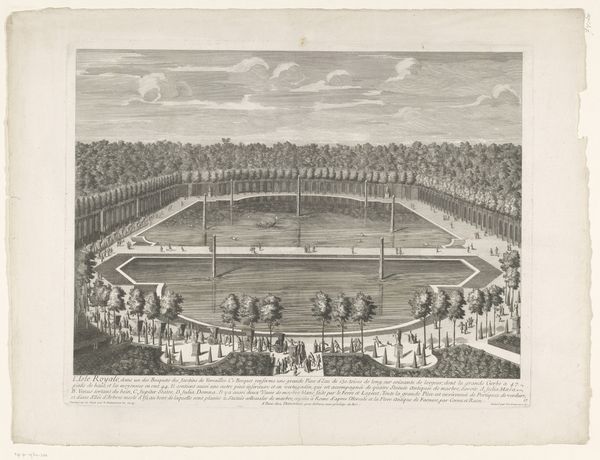 This print of the Fountain of Enceladus at Versailles was made by Quiryn Fonbonne. Versailles was the grand project of Louis XIV, a monument to his power and vision of absolute monarchy. This image offers a window into the cultural and political landscape of 18th-century France. Fonbonne's print captures not just the fountain, but the very essence of royal authority and the spectacle of power. Through visual codes and historical associations, the image creates meaning by alluding to classical mythology as well as contemporary politics. Enceladus, the giant buried beneath Mount Etna, represents the crushing of dissent under Louis's reign. To truly understand this print, we would need to delve into the archives of Versailles, explore accounts of court life, and trace the political symbolism employed by Louis XIV. By doing so, we can better appreciate the complex interplay between art, power, and society in 18th-century France.