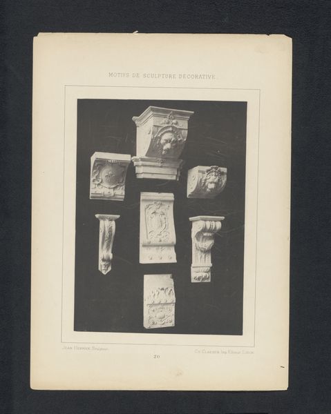 Curator: At first glance, I see something akin to an architectural elevation drawing, albeit with an archaeological sensibility. Editor: Precisely. What we're observing here is a print from between 1843 and 1845 by Tiemen Hooiberg titled "Fragmenten van vier altaren, waaronder twee Nehalennia-altaren, pl. XVIII," or "Fragments of four altars, including two Nehalennia altars, plate XVIII." It appears to be a meticulous rendering, primarily utilizing etching techniques to depict ancient altar fragments. Curator: The linear precision is remarkable. Each stroke serves to articulate not just form, but also the weathering, the history etched – quite literally – onto the surfaces of these stone relics. I’m drawn to the lettering… what can you tell me about these inscriptions? Editor: The inscriptions are key. Nehalennia was a local goddess, worshiped in the Roman province of Germania Inferior, primarily in the Zeeland region of what is now the Netherlands. These altars, dedicated to her, speak to the syncretism of Roman religious practice and local belief systems. You see dedications "DEAE NEHALENNI," to the goddess Nehalennia. Curator: Ah, so each altar piece then isn’t just a marker of faith, but a convergence point, where the local meets the global. Does the composition reflect that meeting of cultures, perhaps by style and construction methods or choice of materials available? Editor: Yes, that tension is at the heart of understanding such objects within their cultural context. The altars themselves, erected by merchants and sailors seeking safe passage, are physical embodiments of trade networks and the negotiation between Roman imperial power and local deities. Hooiberg's etching, then, further mediates our understanding by documenting and classifying these fragments in a rapidly modernizing world increasingly shaped by ideas of history and heritage. The way the objects have been drawn and assembled creates its own meaning. Curator: Absolutely, Hooiberg is part of that ongoing conversation of heritage itself. In this plate we're witness to faith, trade, artistic rendering, cultural continuity and all sorts of lovely conversations in time. Editor: Precisely. It reminds us how material culture and artistic documentation are invaluable for tracing the intertwined pathways of culture, religion, and power across history.