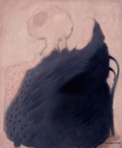 Iwo Zaniewski's painting, "Woman at the Shaded Table", presents us with a study in contrasts, primarily through the stark interplay of light and shadow. A muted palette of greys and blues cloaks the scene, setting a somber, introspective mood. The composition is divided between the obscured figure of the woman and the table dominating the foreground. The table is a dark, weighty mass that anchors the piece, while the woman, rendered in lighter tones, appears almost spectral, fading into the background. This juxtaposition raises questions about presence and absence, visibility and invisibility. Zaniewski challenges our perception by obscuring the subject, prompting us to consider what is hidden versus what is revealed. The geometric simplicity reduces forms to their essence. The tension between the solid darkness and the ethereal lightness invites us to contemplate broader themes of existence and representation. Ultimately, the artwork suggests a continuous play between concealing and revealing.