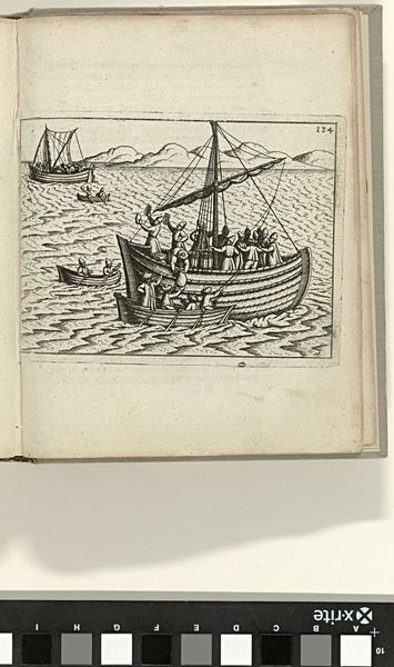 This anonymous engraving, titled 'De boten worden weer te water gelaten', or 'The boats are put back into the water', was created in 1597. The composition is dominated by the linear patterns of waves. The image is structured around horizontal bands of water and land, with boats acting as visual bridges connecting these strata. Notice how each shape and form is meticulously outlined, emphasizing its distinct presence. The artist uses hatching and cross-hatching to simulate depth and texture, primarily in the depiction of the water and the distant mountains, creating an almost palpable sense of movement and distance. The very act of depicting boats being relaunched suggests a moment of renewal, hinting at cyclical themes of departure and return. The engraving method, with its stark contrasts and detailed lines, reinforces a sense of clarity. This allows for a careful consideration of each element and its relation to the whole. It encourages us to look beyond the image, to the larger cultural and philosophical contexts of its time.