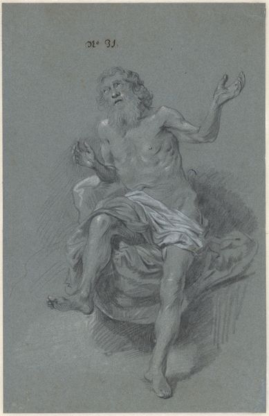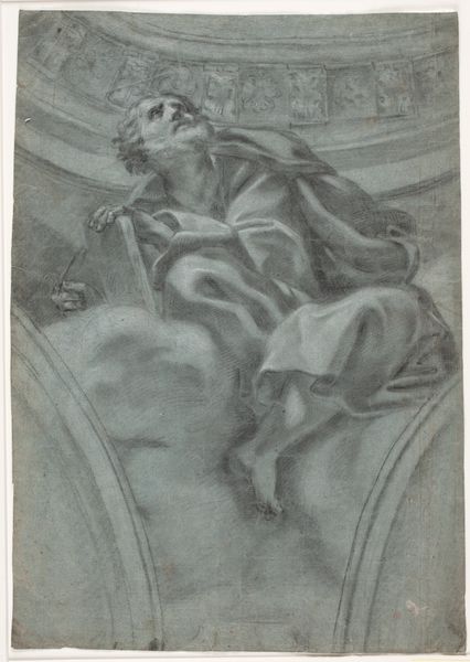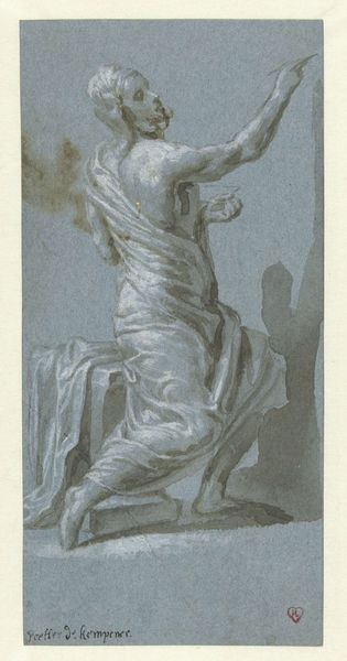 Anton Maria Zanetti the Elder created this print called Diversarum Iconum... using etching, engraving, and chiaroscuro woodcut techniques. Zanetti lived in Venice, a city then known for its theatricality and artistic innovation. This print reflects the prevalent interest in classical antiquity and the male nude, an interest which was intensified during the Renaissance. The image depicts a muscular male figure with a long beard, seemingly struggling to support a heavy architectural element. His pose conveys a sense of strain and physical exertion. The print exemplifies the artistic conventions of its time in its idealized representation of the male form, yet the figure also radiates a vulnerability. Zanetti's technical skills combine with his ability to evoke a sense of human struggle and perseverance. The chiaroscuro effect enhances the drama and emotional impact of the print, inviting viewers to contemplate themes of strength, endurance, and the burdens we carry.