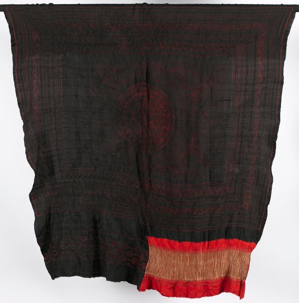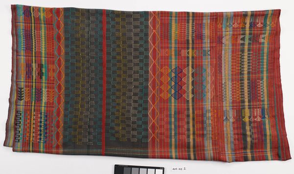Curator: Hello! Let’s discuss this fascinating artwork from the Minneapolis Institute of Art. Editor: This is an interesting piece. It’s called "Turban," created around 1940 from textile and silk fibre art. I am captivated by its elegant colors, though I am also struck by how simple it appears at first glance. What do you see in this piece? Curator: That’s a keen observation. I look at it through the lens of the social context of the time it was created. Turbans are often associated with identity and culture, particularly in South Asia and the Middle East. What I find interesting is how an anonymous artist approaches a culturally specific garment in the mid-20th century. Editor: Right! And here it looks more like abstract art or fashion design than an ethnographic study, right? The texture seems rich in a way that reminds me of printed materiality and clothing design. Curator: Exactly. So, it opens a dialogue. Was this created with cultural sensitivity, or is it perhaps an act of appropriation? What responsibilities do artists have when engaging with cultural symbols that are not their own? How do we deal with its display? Editor: I hadn’t thought of it that way. So, looking at it, do we need more context before we consider it complete? Are we trying to complete an intention by examining the history and how it relates to cultural identity? Curator: Exactly! Also consider that displaying culturally significant items in museums is often a very sensitive and political act. Editor: Thanks! It has made me see the Turban as more than just a textile. It opens up all of these layers of social identity and cultural dialogues that makes the object both beautiful and controversial. Curator: Absolutely. It encourages a continuous reflection about art’s role in our shared and diverse history.