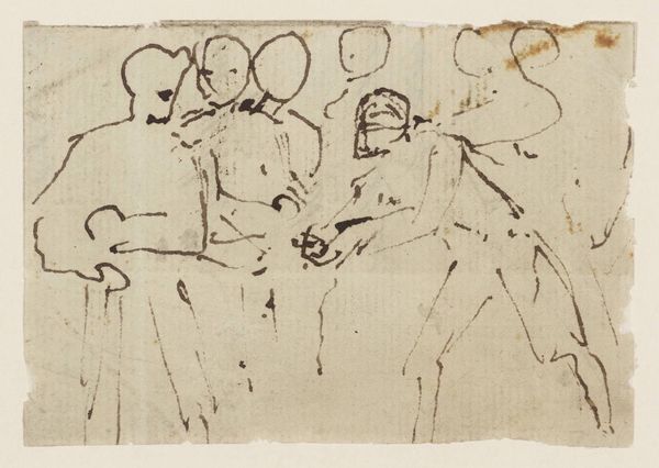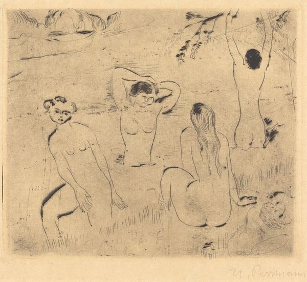 Curator: This is Ernst Ludwig Kirchner's "Nudes," held here at the Harvard Art Museums. Editor: The roughness of the charcoal gives it an immediate, almost confrontational feeling. It's raw. Curator: Indeed. Kirchner, as a key figure in Die Brücke, challenged academic artistic norms. The sketch’s bold lines and simplified forms reflect their rejection of bourgeois conventions. Editor: And you see that tension in the materiality. The choice of charcoal, readily available and inexpensive, democratizes the artistic process, pushing back against the elite's control of art. Curator: Precisely. These nudes weren’t about idealized beauty but about capturing the raw, unfiltered human experience. They reflect early twentieth-century anxieties. Editor: Looking at the process and materials used in the piece provides a deeper understanding of the historical narrative surrounding this piece. Curator: Absolutely. Kirchner's work here really does allow us to see his era and its challenges in such intimate terms.