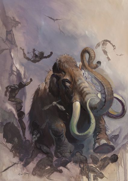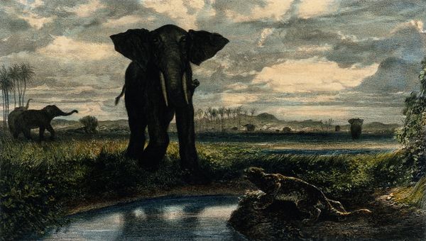 Curator: Alright, let’s delve into Julie Bell's painting, "They Never Forget." This oil painting presents two elephants in a grassy landscape, depicted in a strikingly realistic style. What grabs you initially? Editor: Well, they're so... present. I mean, the elephants command attention. Their size is imposing, but also there’s a kind of gentleness. I’m curious, what story do you think Bell is trying to tell us with this painting? Curator: That's an insightful observation. Consider the title, "They Never Forget". It suggests memory, a cultural connection we often attribute to elephants, and a potential critique on humanity’s role in their dwindling habitat. We might examine the composition. What do you observe? Editor: I notice how the elephant on the left is reaching up, maybe towards the sky? The other seems grounded, more connected to the earth. Could this symbolize different aspects of the species? Curator: Potentially. It can be about memory in both ecological and cultural terms. These animals exist within rapidly diminishing lands because of colonial interests. Do you see how these seemingly benign paintings of wildlife carry immense social implications? Editor: That’s fascinating, I hadn’t thought of it that way. So you are suggesting that even an image that seems focused on the animal itself speaks to a wider problem? Curator: Precisely! Art reflects not only beauty, but also responsibility. Reflect on Bell's choice to depict these animals with such lifelike detail; the intent is clear, is it not? Editor: It’s really powerful to think about how art, even in its quietest forms, can be a statement about environmental politics. It makes me want to learn more. Curator: Indeed, by critically engaging with works such as "They Never Forget", we expand our own understandings, acknowledging that these species reflect our social conscious.