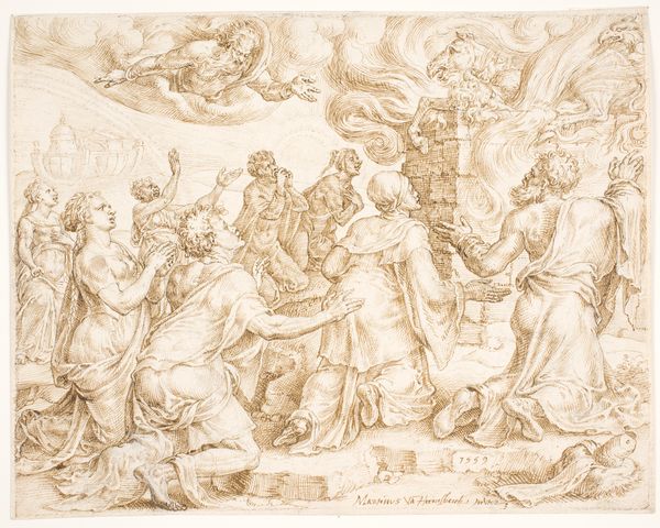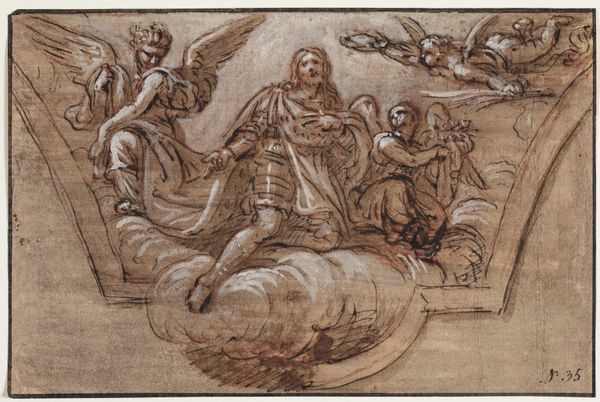 Hans Stutte rendered "Christ’s Entry into Jerusalem" with pen and brown ink, heightened with white, on paper in the 17th century. The materiality here is unassuming: not paint on canvas, or bronze, but a humble drawing. Yet, the way Stutte coaxes the scene into being from these basic materials is remarkable. See how the brown ink establishes the contours, but it's the white heightening that gives the composition its volume and dynamism. This isn't just a drawing; it's a performance of light, rendered through a meticulous layering of tones. Drawings like this one served multiple purposes in the 17th century. They were studies for larger paintings, independent works of art, and teaching tools. They circulated within a network of artists and collectors, allowing for the exchange of ideas and techniques. The work involved wasn't just about technical skill. It was about understanding the flow of images and the networks of patronage that sustained artistic production during the period. This modest drawing demonstrates the power of a seemingly simple medium to convey complex ideas and social relationships.