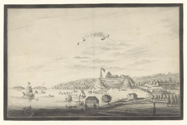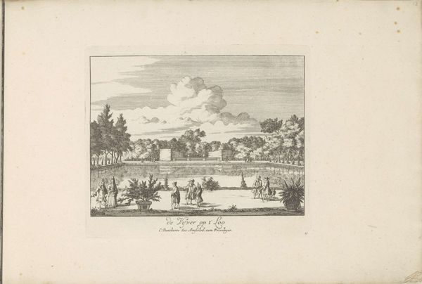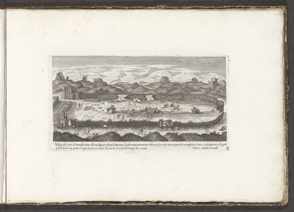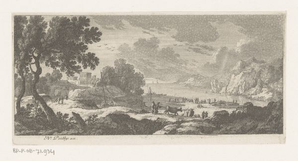 Editor: This is "Romeinse zwavelbaden," or "Roman sulfur baths," an engraving by Pieter van der Aa, created sometime between 1682 and 1730. There’s almost a dreamlike quality to it. It feels both distant and detailed. What catches your eye in this piece? Curator: I’m immediately drawn to how Van der Aa represents the Roman bathhouses themselves. Notice how they're depicted not as pristine structures, but as ruins? These fragmented remains carry a heavy symbolic weight, speaking to the transience of empires and the passage of time. The bathing, itself, signified cleansing - and transformation. Editor: Transformation, like a rebirth? Curator: Precisely. The sulfur baths weren’t merely for hygiene; they were a ritualistic space where the bather might symbolically shed their old self and emerge anew. The very act of immersing oneself in water suggests purification, doesn't it? But here the sea becomes a symbol of broader life, chaos and opportunity - what do you see? Editor: The ships off shore juxtapose a further expansion into the unknown? With a potential implied challenge for its figures to seize control? Curator: Exactly! The image presents this concept between the distant ships and crumbled remains in a distinct contrast - expansion or preservation? A memory we're trying to seize or leave behind? It encapsulates a broader cultural memory – of Roman grandeur and the awareness of its ultimate decline. It’s this constant interplay of creation, dissolution, and re-emergence that makes it resonant for me. Editor: I never would have looked at it that way. Now, those ships almost taunt the figures in the water. So much more to think about than just people bathing! Curator: Precisely. It is often within those historical and cultural residues we find that true visual and conceptual insight may be discovered.