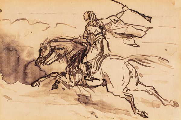 Max Slevogt, a German Impressionist, created this dynamic drawing, titled "Camel Rider," using black chalk on paper. Slevogt's artistic output occurred during a period of increasing colonial expansion, and this piece offers an interesting perspective into the European fascination with and representation of the ‘Orient’. "Camel Rider" presents us with a scene of exoticism and adventure, yet it also subtly underscores the power dynamics inherent in such depictions. The riders, possibly nomadic warriors, are sketched with a sense of urgency and energy, raising questions about the narrative Slevogt is trying to convey. Is it a celebration of their freedom, or a romanticized vision influenced by Western stereotypes? Slevogt prompts us to think critically about the gaze through which we view different cultures and histories. What stories do we tell, and whose perspectives are often left out? Ultimately, the drawing invites us to consider the complexities of cultural exchange and representation.