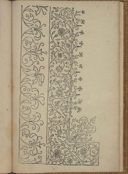 Editor: So, this is a page, 47v, from Andreas Bretschneider’s "New Modelbüch," dating back to 1615. It’s an ink drawing on paper, and it’s lovely! The botanical studies feel so delicate and intricate, even for what's essentially a sketchbook. What can you tell me about its role historically? Curator: Well, pattern books like these were hugely influential. We see here how botanical drawing intertwines with design. Consider the burgeoning merchant class and craft guilds of the time. How do you think these books served their interests and shaped consumer tastes? Editor: I suppose artisans would use them as templates. Were they considered artworks in themselves, or purely functional? Curator: That’s a great question! It's tempting to see them merely as tools, but the very act of collecting, preserving, and displaying them in institutions like the Met elevates their status. Think about how museums influence our understanding of value and authorship. Does exhibiting it change how we view the work itself and Bretschneider’s role as an artist? Editor: Definitely. Seeing it framed and preserved gives it a sense of importance it might not have had originally. It also prompts you to look at it more closely. Were these pattern books only accessible to master artisans? Curator: Access would certainly have been stratified, linked to guild membership and wealth, affecting who could replicate and adapt these designs. This shaped economic power, determining who could profit from these new aesthetic trends. It gives an entirely new layer of context to the image of those flowers! Editor: Absolutely. I came in thinking about pretty drawings and now I am seeing a history of class, labor, and access. Curator: Precisely! Art's power lies not just in the object itself, but in the social forces that shape its creation, dissemination, and reception.