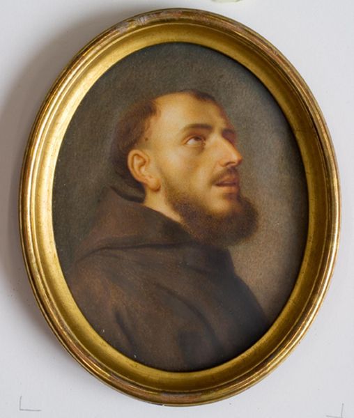 Editor: Here we have Konstantin Egorovich Makovsky's "Portrait of Artist K.Bornikov," created around 1868. I'm struck by the subject's gaze; it's intense, almost challenging. And the oval format lends it a certain intimacy. How do you interpret this portrait? Curator: Note how the artist employs chiaroscuro. Observe the stark contrast between the illuminated face and the shadowed clothing, a technique intensifying the gaze you mentioned. This contrast serves to compartmentalize the figure. Makovsky is drawing attention to what? Editor: The face, definitely! And the artist uses soft, blurred edges everywhere except for the eyes. Is it all about highlighting inner qualities through his stare? Curator: Precisely! And consider the brushwork. Loose, almost impressionistic. Is this to portray emotion, feeling? There are also limited colors in the composition which makes it timeless, don't you think? The muted palette emphasizes the textures and tonal gradations rather than bold color statements. Editor: I see what you mean! It's almost monochromatic, pushing our focus to form and light. It almost makes it modern even though its almost 200 years old! Curator: Quite right. And note the pose – a slight turn of the head. Dynamic, not static. The tension created by this positioning enhances the portrait’s expressive power. A brilliant play on composition, texture and light. It invites continued scrutiny of its semiotic codes. Editor: I hadn’t really considered that sense of movement before. Analyzing those components really reveals layers I missed initially. Curator: And that, precisely, is the value of formal analysis! By understanding each element and its relationship to the whole, we begin to appreciate the intricate intentions behind the artwork.