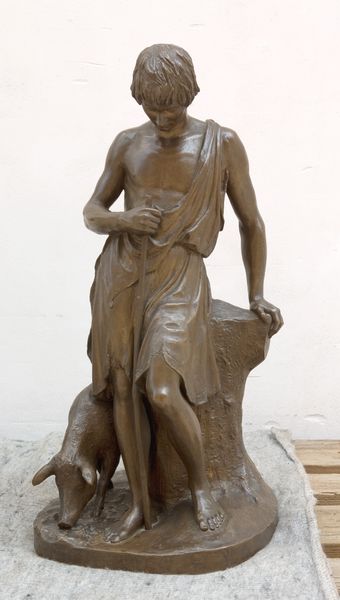 Editor: Yannoulis Chalepas' "Medea III," a marble sculpture from 1933, possesses this incredible rawness, a barely contained emotionality. The figures feel trapped, almost suffocated, within the stone itself. How do you interpret this work, especially given its classical allusions? Curator: It's crucial to situate Chalepas' Medea within a complex web of societal anxieties. The Medea myth, already charged with themes of betrayal and infanticide, takes on another layer when considered through a modern lens. How might Chalepas be commenting on patriarchal structures, which drive Medea to such extremes? Editor: I hadn't considered that angle. So, the sculpture isn't just a depiction of the myth, but also a critique? Curator: Exactly. Think about the formal choices, too. The figures are roughly hewn, not idealized in the classical tradition, suggesting the violence inflicted upon Medea’s identity and agency. Her positioning dominates, but doesn't necessarily empower her; she is the tragic anti-hero, crushed between circumstance and her own actions. Editor: The figures do seem trapped, without escape. And her face...it’s not beautiful, it’s weary and worn. Curator: Indeed. Chalepas compels us to confront uncomfortable questions about power dynamics, marginalization, and the psychological toll of systemic oppression. What does it mean to portray such a figure in this way, in this period of time? Editor: It feels less like a historical drama, and more like a commentary on timeless issues of injustice and female rage. Curator: Precisely. Hopefully this experience challenges us to see the classics with a critical, contemporary gaze, always asking: who holds power, and whose stories are silenced? Editor: I'll definitely never look at Greek mythology the same way again. Thanks.