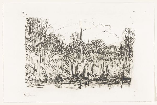 Pieter Ras made this drawing, "Houses along a road by the water" in 1918 using black chalk. The marks here are so lively. Look at the way he uses smudges and varied pressure to create such an atmospheric scene. You can almost feel the dampness in the air, the way the light filters through the trees. The drawing feels immediate and fresh. There's a real push-pull between detail and suggestion. The buildings are only loosely defined, created with an accumulation of quick, scribbled lines. Take the tree in the center. The trunk is rendered with a few strong strokes, but as your eye moves upward, the branches dissolve into a network of delicate, feathery lines. It reminds me of Twombly's mark-making, how he captured movement with just a few well-placed gestures. This piece reminds us that art is a conversation across time.