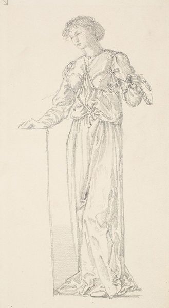 Curator: Looking at "The Suede Gloves" from 1890 by James Abbott McNeill Whistler. A delicate pencil drawing. Editor: There's a sense of lightness, of transience, in this portrait. The lines are so fluid. It looks like a fleeting impression. Curator: Absolutely. Whistler, even in his drawings, captures an immediacy akin to his painted work. But I think what we're really seeing here is the symbol of late-Victorian feminine restraint. The gloves, of course, a signifier of bourgeois femininity, protecting the woman from labor. Editor: Well, yes, the gloves suggest a life divorced from manual labor, but let’s not ignore the *process* by which this was created. The very visible pencil strokes remind us of Whistler's hand, the deliberate mark-making—the labour, if you will, that went into portraying leisure. And notice how economical he is with the pencil—really letting the paper show through. Curator: Precisely. But the impression it gives—consider the sitter's averted gaze and rigid posture. Are they physical restraints or imposed psychological burdens? The symbolism within these visual languages are hard to ignore. Her attire isn't simply fashionable, it embodies cultural ideals. Editor: Though I wouldn't fixate on the supposed 'burdens' she bears, so to speak. I see incredible technique; the way he suggests the fall of light with so few lines. What paper was used? What grade of pencil? These questions, I think, shed light on his specific artistic intent. This wasn't about rendering an accurate likeness, it's a study in tonal values with minimal means. Curator: Fair enough. There's definitely that visual experimentation occurring. Editor: It shows how everyday materials—paper, graphite—could be elevated to something more. That interests me more. Curator: The cultural artifact is inseparable from its material conditions. Thank you. It enriches how we understand its purpose. Editor: And vice versa! The way an object embodies ideals tells us so much about how the artist approached their work.