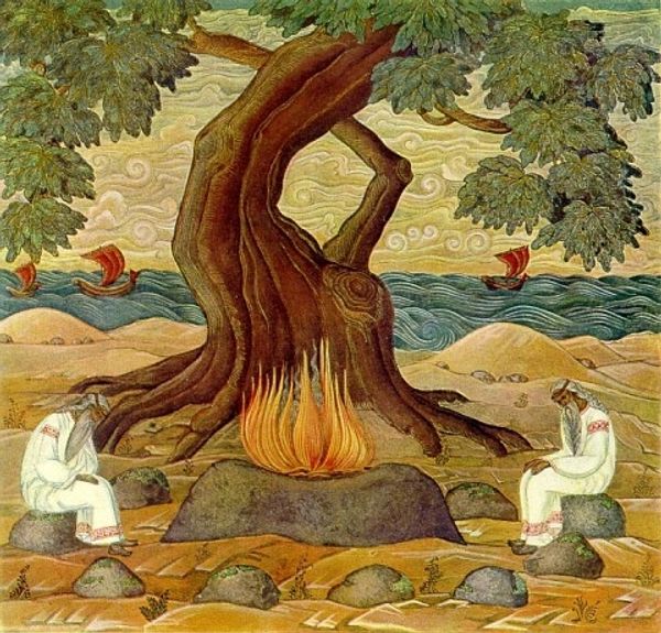 Tivadar Kosztka Csontvary made Pilgrimage to the Cedars in Lebanon with oil on canvas. The colors are striking, with that dark, brooding sky contrasting against the pale desert and the vibrant green of the cedar. It feels both real and otherworldly, doesn't it? Look closely at the tree. The brushstrokes are direct, almost urgent, and yet, there's a delicacy in how he renders the leaves. You can sense the physicality of the paint, like he’s building up the image layer by layer, letting each mark breathe. There’s a bird perched on one of the branches, this detail adds to the mystical atmosphere. Csontvary reminds me of El Greco, with his dramatic use of light and slightly distorted forms. Both artists create worlds that are slightly off-kilter, inviting us to question our perceptions. Ultimately, this painting is about the act of seeing, and feeling, and perhaps even believing in something beyond the everyday.