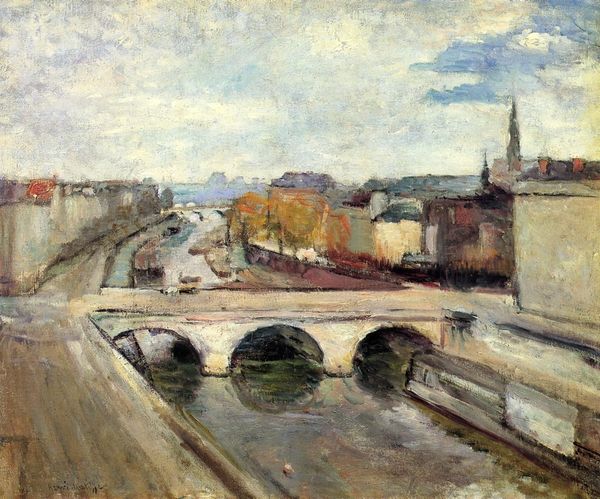 Vincent van Gogh's "View on the Singel in Amsterdam," a small oil on canvas, presents a study in subdued tones and structured composition. The painting's muted palette evokes a somber atmosphere, with strokes of grey, green, and brown. The visual field is carefully organized, giving the painting a strong structure. Van Gogh’s brushwork is particularly striking; short, deliberate strokes create a sense of texture and movement. Notice the use of line and form, which contributes to a dynamic interplay between the architectural elements and the natural world. The dome of the church, which sits centrally within the painting, acts as a visual anchor, balancing the horizontal emphasis of the canal. This work destabilizes the conventional picturesque of landscape painting, using a structural approach which prefigures his later, more expressive landscapes. It is a study in the artist’s formative period where the orchestration of form and color serves as a conduit for emotional and philosophical inquiry. This approach to form and color can be viewed as an engagement with modernism, which sought to challenge fixed meanings and offer new ways of thinking about space and representation.