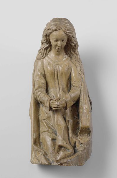 Here we see a wooden sculpture of the Virgin and Child created by Hendrik Douverman, likely in the early 16th century. The dominant visual experience is one of verticality and stillness, emphasized by the elongated figures and the simple, flowing lines of Mary’s robes. The texture of the wood grain adds a tactile dimension, inviting a sense of closeness and reverence. Douverman's skillful carving highlights the subtle contours of the figures, creating a sense of depth and volume within the constraints of the medium. The structural arrangement, with the child positioned centrally in Mary's arms, reinforces the theological importance of the maternal bond and the divine nature of Christ. The sculpture engages with established religious meanings while exploring new ways of representing sacred figures through form and material. Notice the rhythmic pattern of the drapery folds, this design not only enhances the sculpture's aesthetic appeal but also directs the viewer's gaze, drawing us into a deeper contemplation of the spiritual narrative. The artwork challenges fixed notions by inviting ongoing interpretation and reverence.