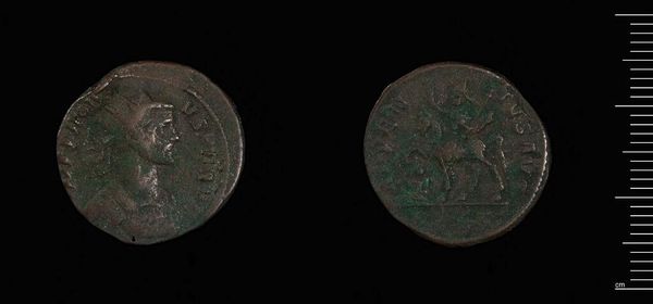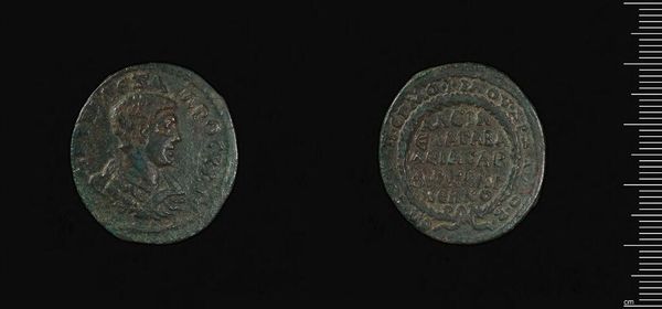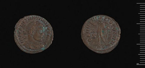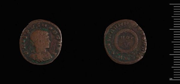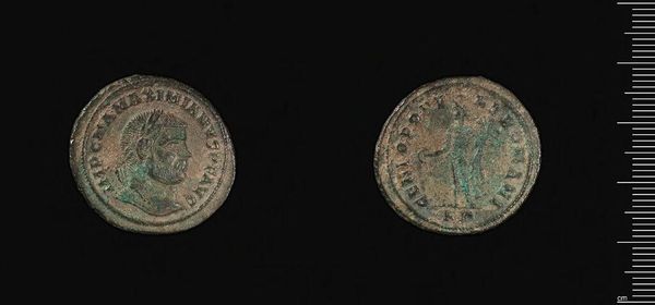 Editor: Here we have a Follis of Diocletian from Thessalonica. It’s small, of course, being a coin, and worn with age. What can you tell me about it? Curator: Well, this coin embodies the power dynamics of the Roman Empire, reflecting Diocletian's efforts to stabilize the economy through currency reform. How do you think this coinage visually reinforces or challenges existing hierarchies? Editor: I guess it reinforces them, with his portrait right there! But that makes me think, who *wasn't* represented? Curator: Exactly! Consider the voices absent from this representation: the enslaved, women, and marginalized communities. It highlights the selectivity of historical narratives and invites us to question whose stories are told, and whose are silenced. Editor: That’s a great point; I hadn’t thought of it that way. Thanks! Curator: Absolutely! It’s important to remember that even something as small as a coin can hold a powerful political message.