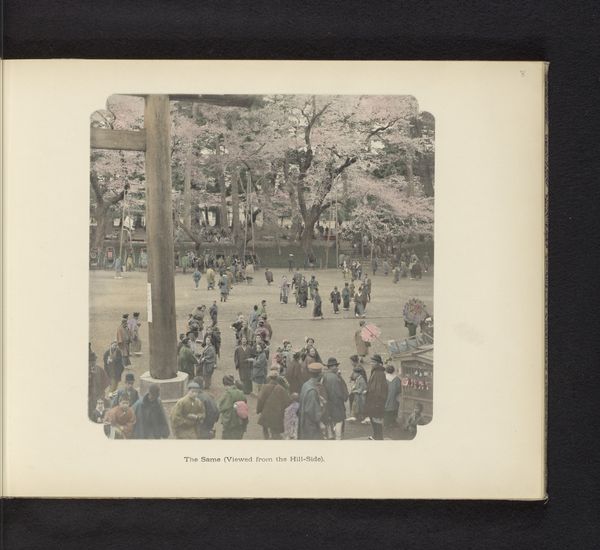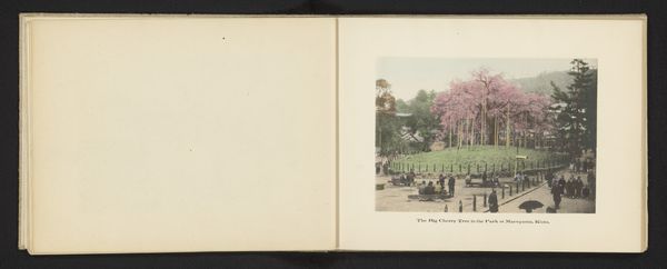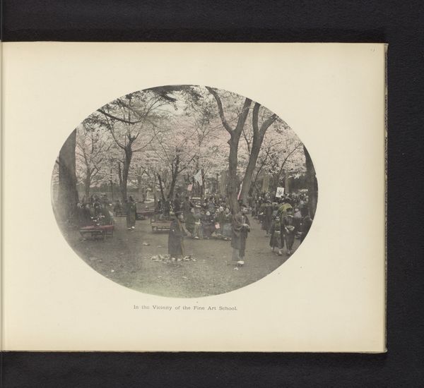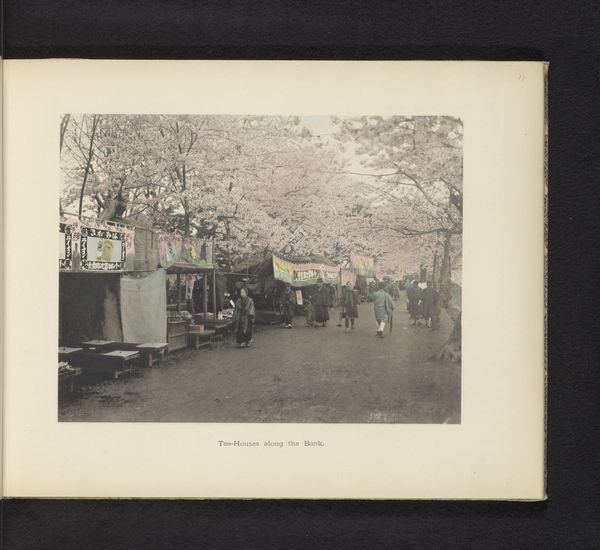 Art Historian: Hello, there. Editor: Hi! I’m really drawn to this piece, it’s entitled “Laan met Japanse sierkersen in Uenopark in Tokyo, Japan” (Lane with Japanese Cherry Trees in Ueno Park in Tokyo, Japan) by Kazumasa Ogawa. It was made sometime before 1897, and is an albumen print. It's gorgeous. How would you interpret this photograph? Art Historian: Looking at this albumen print, my attention is drawn to the materials used and the process itself. Albumen prints were incredibly popular, representing a certain commodification of imagery. Who was commissioning these images? And what audience were they catering to? It speaks volumes about consumption and desire, wouldn’t you agree? Editor: I do see what you mean. So, you're not necessarily focused on the image of cherry blossoms but more on the production of it, the…who, how, why. It being made specifically as an albumen print influences your perspective. Art Historian: Precisely. Think about the labor involved in creating this. The photographer, of course, but also those involved in preparing the albumen paper, the darkroom technicians...It highlights the means of production and challenges traditional ideas about artistry. Also consider its social context and impact. How would you say this image functioned in promoting or maybe misrepresenting Japanese culture? Editor: Hmmm. It’s easy to just see the beauty, but I get that we should ask questions. Maybe it exoticized Japan, or even oversimplified the culture. Art Historian: Exactly! And even influenced the economy in some way, given its role in tourism! Editor: It really changes my view, to consider all the context around how an image is created, its materials, who made it, and how it circulated. It definitely provides a broader picture. Thank you for that, It makes the whole piece even richer!