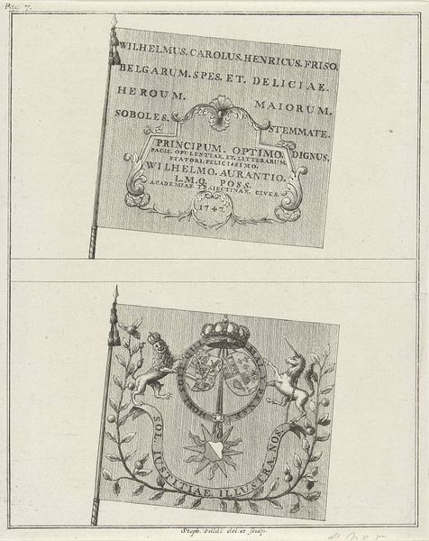 Curator: This is an engraving from the late 1780s, "Penning tegen Jozef II," created by an anonymous artist. The Rijksmuseum houses it now. Editor: It’s stark, isn’t it? High contrast, a real sense of tension conveyed through the sharp lines. The detail in such a small format is impressive, a grim precision. Curator: Indeed. What we see are actually two separate circular designs stacked one atop the other. Both use allegorical figures to critique Emperor Joseph II, particularly regarding conflicts in the Austrian Netherlands. Note how prints like this circulated widely, shaping public opinion through accessible imagery and text. Editor: The upper image depicts what? Is that tyranny being overthrown? It feels very revolutionary given the broader historical context with its clear references to violent revolt. Who is depicted there? Curator: Yes, precisely. It visualizes the events of 1583, featuring figures personifying Liberty overthrowing Tyranny represented as a lion. The lower section alludes to the Emperor offering Justice a broken wreath while treading on a decapitated head. Symbolically rich in materials and printing press to address injustice. Editor: The act of making and disseminating prints itself became an act of resistance. Considering who consumed these works—were they aimed at an elite audience or more general public to mobilize against the regime? Curator: More general consumption, absolutely. The use of vernacular language in addition to symbolic visual components helped democratize this message and ensured greater outreach across society. The lines are distinct and well-designed in order for the message to be conveyed. Editor: So it functioned almost like propaganda then. This makes me rethink art and production - beyond just decoration but powerful visual tools employed amidst socio-political tensions...it reveals more complex intersectional readings concerning those in authority abusing citizens. It wasn't just about documenting events though? Curator: Not just documentation at all! It represents the people's active role against oppressive rule as engraved permanently with the etching. The method of production, that accessibility of the engraved imagery really enabled active resistance against an empire at that period... This medium in itself reveals a powerful truth about those tensions throughout the social-political sphere during the Emperor's time of service... Editor: Such an act to undermine with imagery! Next time I observe it in depth I might have to do a deeper delve on my next exploration! Curator: A small image that reflects a tumultuous moment and reveals how social anxieties and power relations play out! It makes you rethink the materials utilized along with the people, power, politics and process involved.