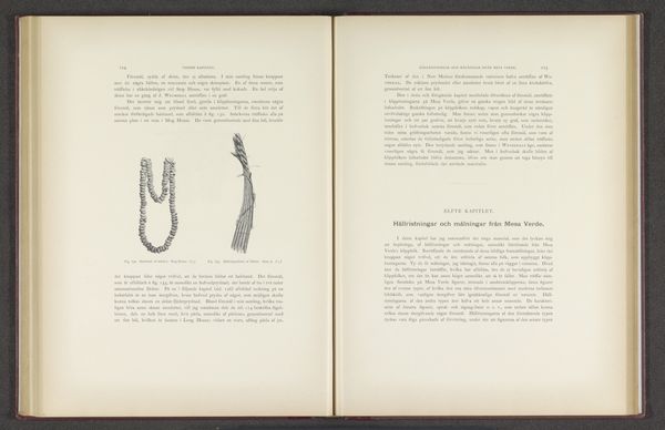 Gustaf Nordenskiöld created this lithograph, "Resten van gereedschappen die zijn gevonden in het Mesa Verde National Park," sometime in the late 19th century. The stark monochrome and the arrangement of the tools create a unique visual experience. The composition is simple: tools are displayed with attention to their shape and form. It's as if Nordenskiöld aimed to dissect the essence of these objects. Each tool is rendered with meticulous lines and shading, revealing a concern for texture and materiality. These linear elements are reminiscent of structuralist thought where individual components contribute to the overall composition. The tools, once functional items within a community, are presented here as artifacts of form and material, prompting contemplation about the relationship between utility and representation. Do these images serve as mere depictions, or do they point to a larger narrative about progress, archaeology and the representation of culture? The formal quality of the lithograph lies in its capacity to isolate and elevate mundane objects, transforming them into potent symbols of cultural inquiry and historical representation.