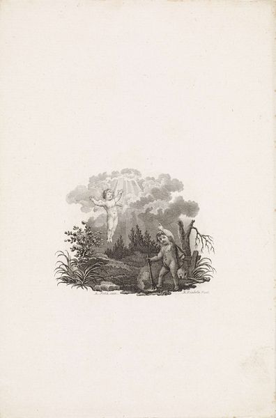 This vignette with two female allegorical figures was made by Reinier Vinkeles, most likely in the late 18th or early 19th century. It is made using an engraving process, cutting lines into a metal plate and then using ink to transfer the image to paper. The lines themselves are the art here; they give the whole image tone and texture. Look closely, and you will see how the artist used different densities of lines to give an effect of light and shadow. It is a labor-intensive process, demanding both technical skill and artistry. Engravings like this were a crucial part of the print industry at the time, a precursor to photography. They allowed images to be reproduced and disseminated widely, playing a vital role in spreading ideas and information. While often overlooked in favor of painting or sculpture, engraving was a highly skilled craft with its own distinct aesthetic and social significance. So, next time you see an engraving, remember the time and skill that went into its making, and the important role it played in shaping our visual world.