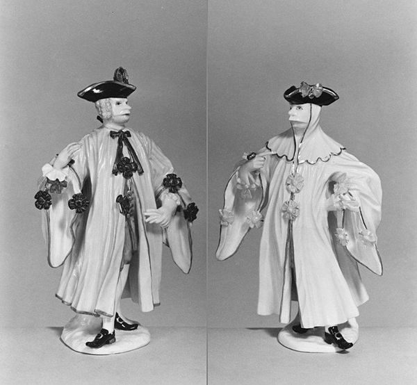 These porcelain Harlequin figures were made at the Cozzi Manufactory in Venice sometime between 1764 and 1812, and they offer us a glimpse into the vibrant culture of Commedia dell'Arte that flourished in the 18th century. These figurines capture the essence of the Commedia dell'Arte, a popular form of improvisational theatre that originated in Italy. The characters, with their distinctive masks and costumes, represent archetypes of Venetian society. Harlequin himself, with his checkered costume, was the mischievous servant, often outsmarting his masters. Looking at the time in which these figures were made, we can ask what the relationship of the Cozzi factory was to the state. Were the popular characters of Commedia dell'Arte seen as harmless entertainment, or as potentially subversive social commentary? By examining the social history surrounding the creation of these figures, consulting theatre archives, costume designs, and workshop records, we can start to understand the rich cultural context in which these Harlequins came to life.