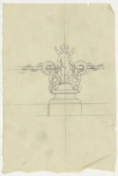Curator: Here we have an intriguing 16th-century drawing: a "Design for the Tomb of Christophe de Thou" now residing at the Metropolitan Museum of Art. Editor: It's fascinating, almost spectral. The delicate lines and subtle shading create an ethereal quality, a ghostly monument barely there. Curator: Indeed. I'm particularly struck by the meticulous use of line. Note how each element—the columns, the portrait medallions, the base—is delineated with a precise, almost architectural, quality. It speaks volumes about the Renaissance fascination with form. Editor: And the labor. One can only imagine the hours, perhaps days or even weeks, dedicated to crafting each curve and contour of this sketch. Who was this artist, and under what conditions did they toil? It's difficult to ignore the material realities informing such a refined design, considering the social dynamics behind patronage and art production in the 16th century. Curator: A valid point. Though the focus on pure visual structure and design is overwhelming: notice how the vertical thrust of the columns is balanced by the horizontality of the base and entablature, a testament to formal Renaissance sensibilities. The medallions act as visual anchors drawing the eye inward. Editor: Yet, a tomb is intrinsically about materiality, decay, remembrance. While the forms adhere to established conventions of Renaissance design, one should think about the social symbolism inherent in memorializing powerful figures like Christophe de Thou, examining the rituals and commodities related to mourning during the period. This image acts as a fragment, prompting questions beyond pure aesthetics. Curator: Ultimately, whether one is more engaged with material concerns or formalism, the power of the image lies in its ability to invite closer viewing. Editor: A valuable perspective on labor, power, form and commemoration embodied by lines. It certainly invites contemplation.